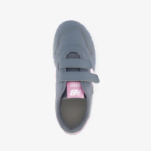 Grijze New Balance sneakers met roze accenten voor meisjes. Het bovenwerk is van imitatieleer gemaakt, het binnenwerk van textiel en de stevige zool met profiel is van rubber. Voorzien van twee klittenbandsluitingen en comfortabele binnenzool van textiel. Deze is uitneembaar. De sneakers hebben een wit-paarse buitenzool en op het bovenwerk zijn merkopdrukken aangebracht.