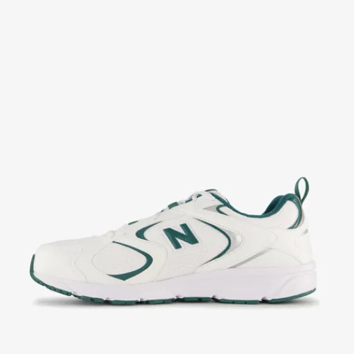 Witte New Balance ML408 heren sneakers met groene details. Het buitenwerk is gemaakt van leer, het binnenwerk is van textiel en de stevige zool met profiel is van rubber. Voorzien van een vetersluiting en hiellusjes voor een makkelijke instap. De sneakers hebben een uitneembare binnenzool zodat je eventueel je eigen zolen in de sneakers kan dragen.