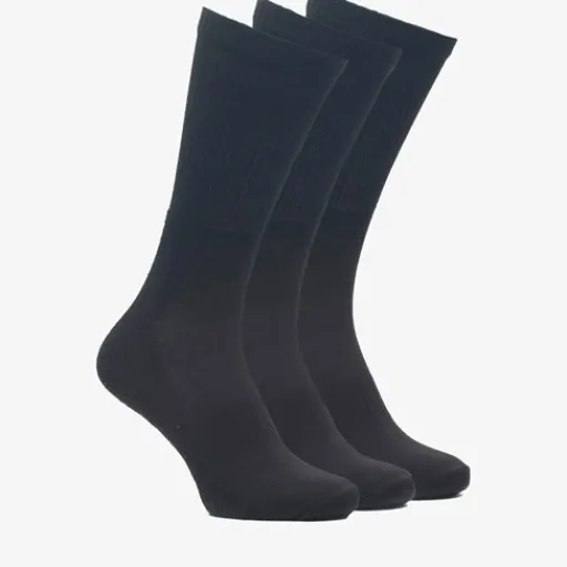Drie paar lange, zwarte sportsokken van Osaga. Gemaakt van 85% katoen, 10% polyester en 5% elastaan.