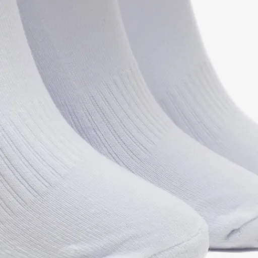 Drie paar witte sport sneakersokken van Osaga. De sokken zijn middellang van model en gemaakt van 85% katoen, 10% polyester en 5% elastaan.