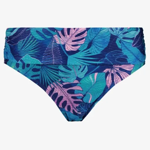 Blauw bikinibroekje voor dames. Voorzien van een omslag zodat je zelf kunt kiezen of je het broekje high- of midwaist draagt. Het bikinibroekje heeft een all over bloemenprint en is gemaakt van 85% polyester en 15% elastaan.ΒΆ
