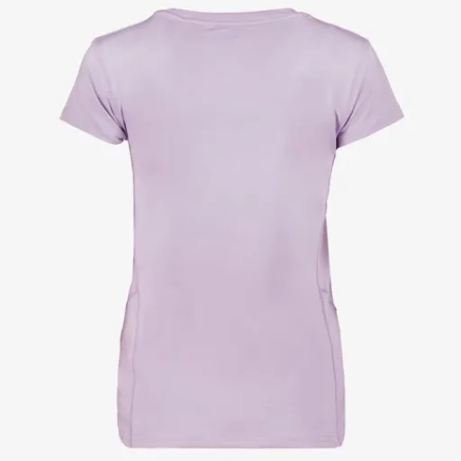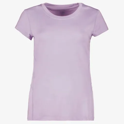Lila sport T-shirt voor dames van Osaga. Voorzien van korte mouwen en een ronde hals. Het sportshirt is vervaardigd van sneldrogend materiaal en heeft een comfortabele pasvorm voor veel bewegingsvrijheid. Gemaakt van 87% polyester en 13% elastaan.