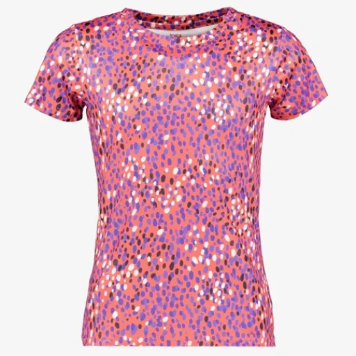 Paars sport T-shirt voor meisjes van Osaga. Voorzien van korte mouwen, een ronde hals en all over stippenprint. Het sportshirt is vervaardigd van sneldrogend materiaal en heeft een comfortabele pasvorm. Gemaakt van 87% polyester en 13% elastaan.