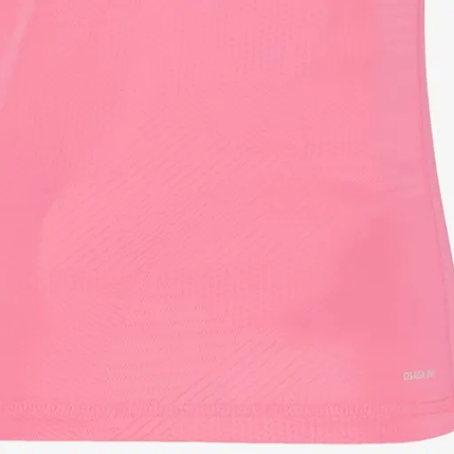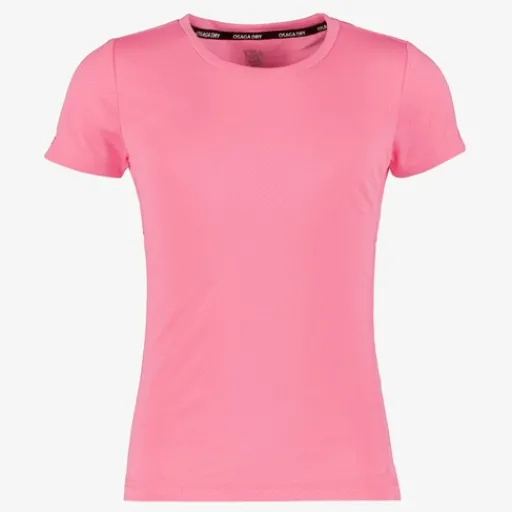 Roze Osaga Dry sport T-shirt voor kids. Voorzien van een ronde hals en korte mouwen. Dit sportshirt is vervaardig van sneldrogend materiaal en heeft een comfortabel pasvorm. Gemaakt van 100% gerecycled polyester.