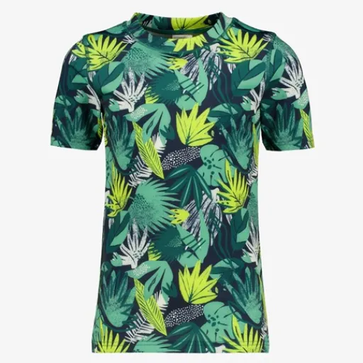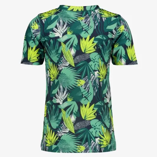 Dit groene zwemshirt van Osaga is UV-werend en beschermt je kindje tegen de zon. Het shirt houdt 98% van de UV-straling tegen. Ideaal voor een dagje strand of watersport! Het zwemshirt met korte mouwen is vervaardigd van sneldrogend materiaal en voelt niet zwaar aan wanneer het nat wordt. Voorzien van een tropische print. Met het UV zwemshirt geniet je kind volop van het mooie weer én een frisse duik zonder te verbranden door de zon. Gemaakt van 83% polyester en 17% elastaan.
