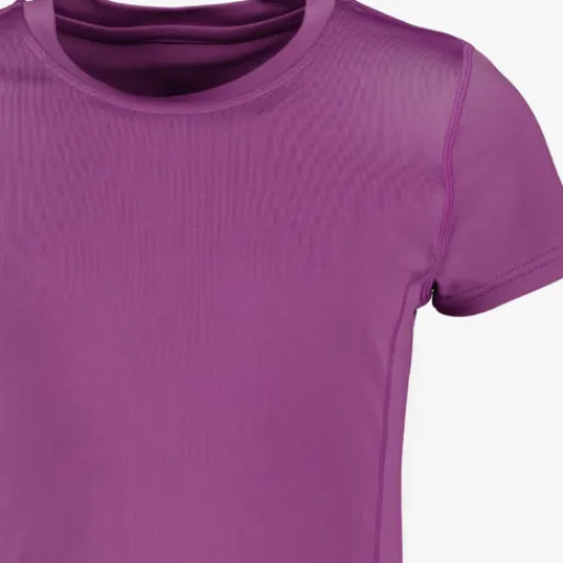 Paars sport T-shirt voor meisjes van Osaga. Voorzien van een ronde hals en korte mouwen. Gemaakt van 87% polyester en 13% elastaan.