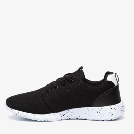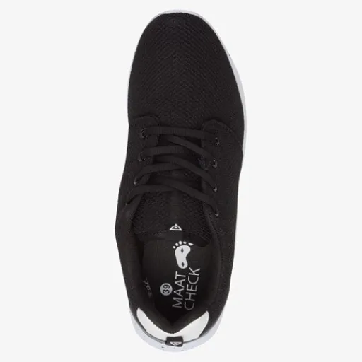 Zwarte sportschoenen van Osaga voor kids. Gemaakt van mesh, een binnenwerk van textiel en een stevige profielzool. De sportschoenen hebben een vetersluiting en aantreklusje op de hak en tong voor een makkelijke instap. De uitneembare binnenzool is gemaakt van textiel en bevat een maatcheck zodat je precies kunt kijken welke maat geschikt is voor jou! De sportschoenen hebben een bovenwerk van ademend mesh voor goede ventilatie van de voeten. Voorzien van een witte, flexibele buitenzool met zwarte spikkels.
