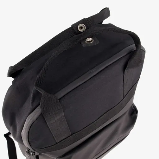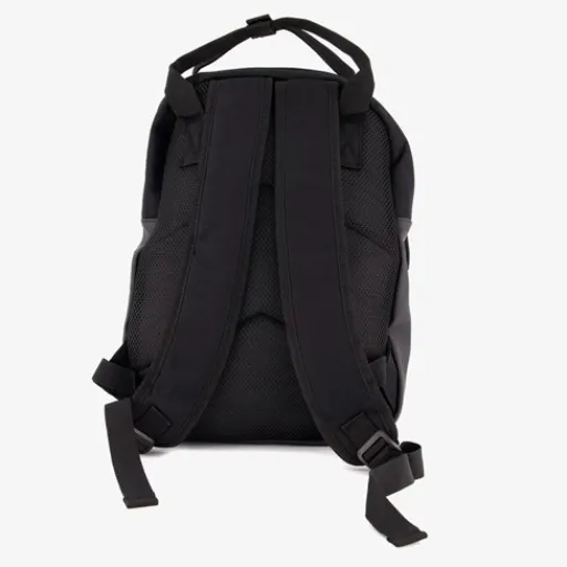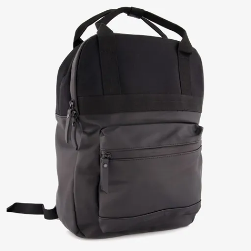 Zwarte rugzak van Osaga. Deze stijlvolle en praktische rugzak is voorzien van een waterdichte onderzijde en waterdichte ritsen. De tas heeft een groot hoofdvak met rits en een kleiner voorvakje met rits. De schouderbanden zijn gewatteerd en in lengte verstelbaar. Aan de bovenzijde heeft deze rugzak twee hendels zodat je de tas makkelijk aan de hand mee kunt nemen. De afmetingen zijn: 10 x 30 x 40. De inhoud is 12 liter.