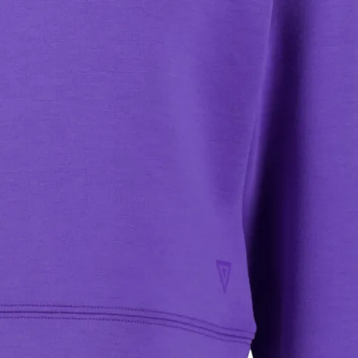 Paarse cropped hoodie voor meisjes van Osaga, voorzien van een capuchon en lange mouwen met elastische boorden. Gemaakt van 72% polyester, 23% viscose en 5% elastaan.