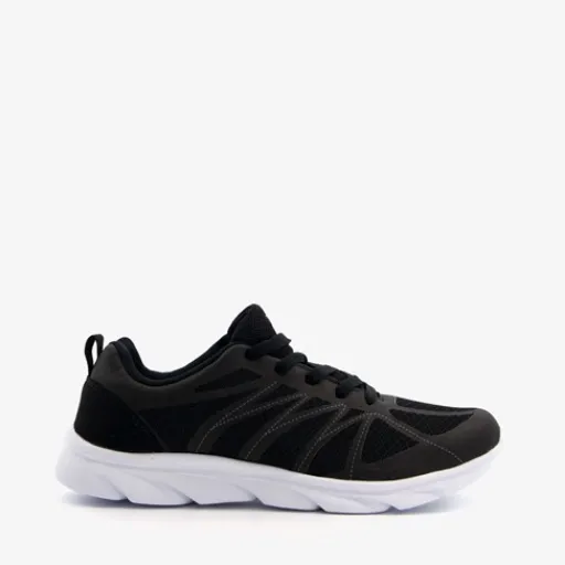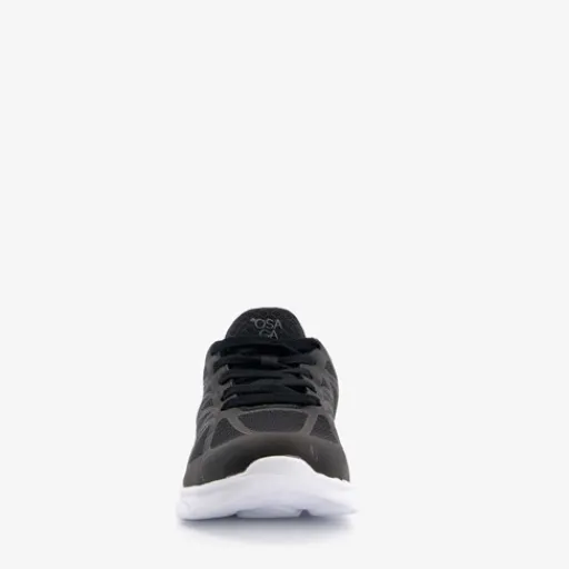 Zwarte trainingsschoenen voor dames van Osaga. Gemaakt van textiel, een binnenwerk van textiel en een stevige profielzool. De sportschoenen hebben een vetersluiting en aantreklusje op de hiel voor een makkelijke instap. Het comfortabele voetbed is gemaakt van textiel en is uitneembaar. De lichtgewicht trainingsschoenen hebben een ademend bovenwerk en een schokdempende, witte zool.
