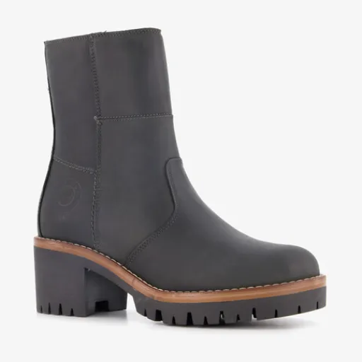 Zwarte boots voor dames van Output. Het buiten- en binnenwerk zijn gemaakt van leer en de buitenzool met profiel van rubber. Voorzien van een ritssluiting aan de binnenzijde, een zachte binnenvoering en een comfortabele binnenzool van textiel. Deze stoere dames boots hebben een stevige blokhak van circa 4 cm en een schachthoogte van 17 cm. Binnenzool is niet uitneembaar.
