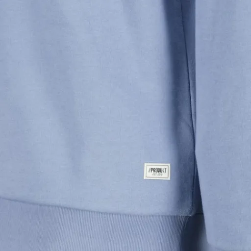 Lichtblauwe sweater voor heren uit de Produkt collectie. Voorzien van lange mouwen en een hoge crewneck met geribde details. De sweater heeft elastische boorden en is gemaakt van 70% katoen en 30% polyester.