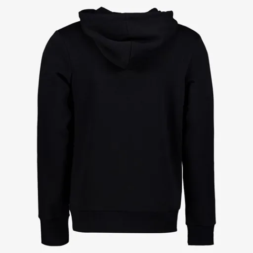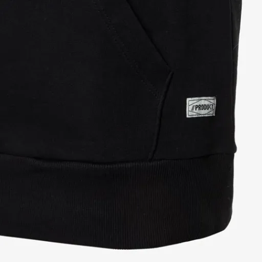 Zwart sweatvest voor heren uit de Produkt collectie. Voorzien van een ritssluiting en een capuchon met aantrekkoordjes. De hoodie elastiek in de boorden en twee steekzakken aan de voorzijde. Gemaakt van 70% katoen en 30% polyester.
