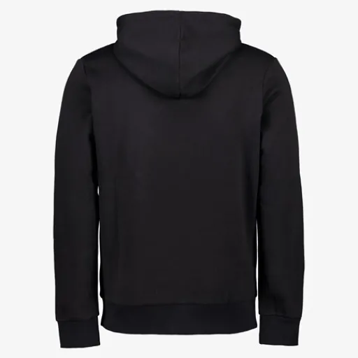 Zwarte Produkt heren hoodie. Voorzien van een capuchon met aantrekkoordjes en een buidelzak aan de voorzijde. De hoodie heeft elastische boorden en is gemaakt van 70% katoen en 30% polyester.