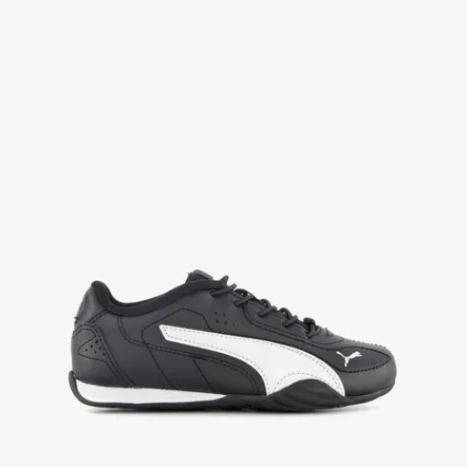 Zwarte Puma Catch AC PS sneakers voor kinderen. Het buitenwerk is gemaakt van imitatieleer, het binnenwerk van textiel en de profielzool is van rubber. Voorzien van een vetersluiting en een comfortabele binnenzool van textiel. Deze is uitneembaar. De sneakers hebben witte details en witte Puma Formstrips op de zijpanden.