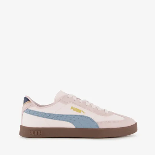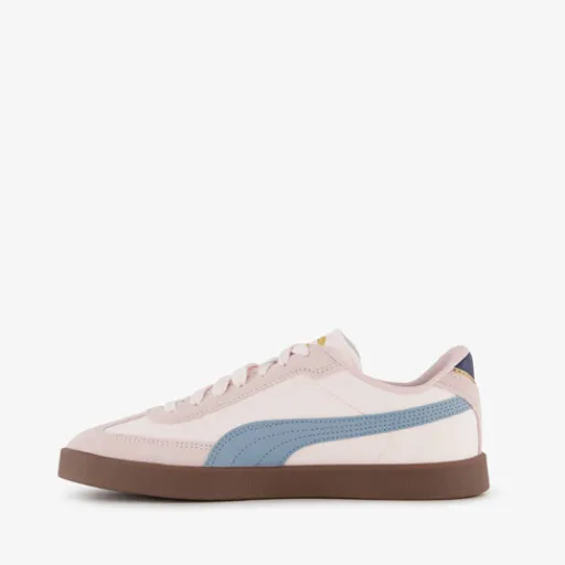 Roze-blauwe Puma Club II Era sneakers voor meisjes. Het bovenwerk is gemaakt van imitatieleer, het binnenwerk is van textiel en de stevige zool met profiel is van rubber. Voorzien van een vetersluiting en een comfortabele binnenzool van textiel. Deze is uitneembaar. De sneakers hebben een bruine buitenzool en goudkleurige merkopdrukken op het bovenwerk.