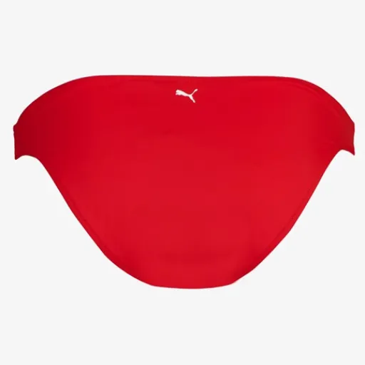 Rode Puma bikini hipster. Het bikinibroekje heeft een witte merkopdruk aan de achterzijde. Gemaakt van 80% nylon en 20% elastaan.