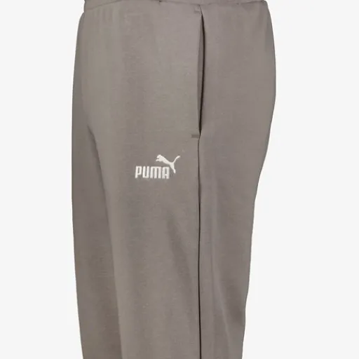 Grijze Puma ESS NO. 1 Logo FL CL S joggingbroek voor heren. Voorzien van een elastische tailleband met aantrekkoordjes, elastische boorden bij de broekspijpen en twee steekzakken aan de voorzijde. De joggingbroek heeft een witte merkopdruk op het bovenbeen en is gemaakt van 100% katoen.