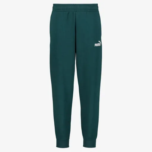 Groene Puma ESS NO. 1 Logo joggingbroek voor kinderen. Voorzien van een elastische tailleband met aantrekkoordjes, twee steekzakken aan de voorzijde en elastische boorden bij de broekspijpen. De joggingbroek heeft een logo opdruk op het bovenbeen en is gemaakt van 66% katoen en 34% polyester.