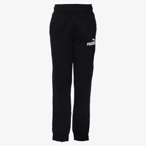 Zwarte Puma Essentials joggingbroek voor kids. Voorzien van een elastische tailleband met aantrekkoordjes en twee steekzakken. De joggingbroek heeft elastiek in de broekspijpen en zwarte merkopdrukken. Gemaakt van 100% katoen.