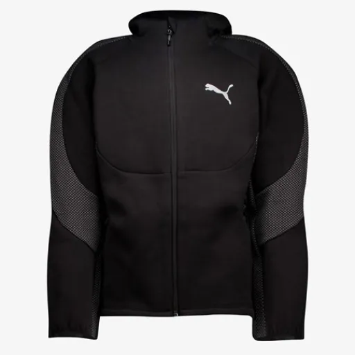 Zwarte Puma Evostripe sweatvest voor heren. Dit mooie sportvest kan je casual dragen en uiteraard kan je er ook lekker in sporten. De dryCELL technologie voert het vocht gemakkelijk weg zodat jij droog en fris blijft tijdens het trainen. Voorzien van een ritssluiting, hoge kraag, capuchon en twee steekzakken met ritssluiting aan de voorzijde. Gemaakt van 77% katoen en 23% polyester.