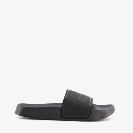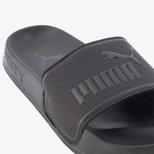 Zwarte Puma Leadcat 2.0 badslippers voor dames en heren. Gemaakt van synthetisch materiaal en rubber en voorzien van een stevige profielzool van rubber. De Puma slippers hebben een comfortabel voetbed en teenband met merkopdrukken. De binnenzool bevat de EVA technologie wat zorgt voor een goede demping.