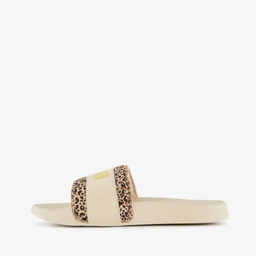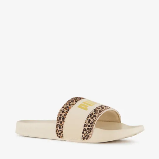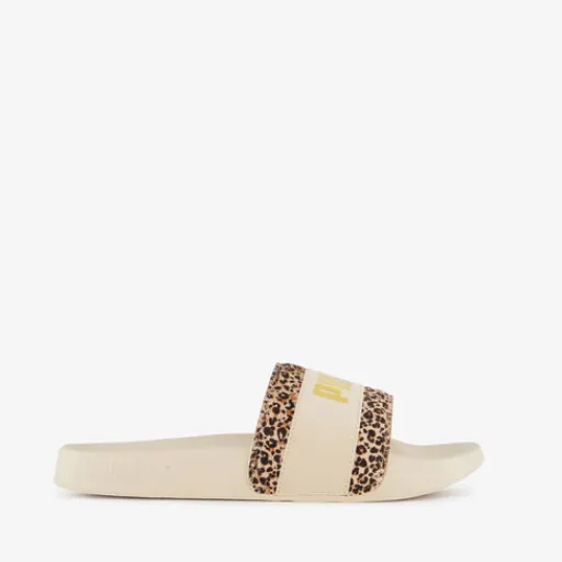 Puma Leadcat 2.0 dames badslippers met panterprint details beige