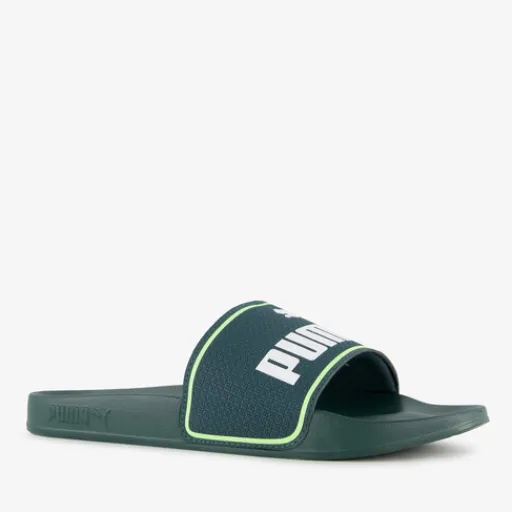 Donkergroene Puma Leadcat 2.0 Green Terrain badslippers voor heren. Deze heerlijk comfortabele badslippers van Puma zijn ideaal voor in huis, in de sportschool of naar het zwembad. Gemaakt van synthetisch materiaal, met een comfortabel voetbed en een brede band met merkopdruk.
