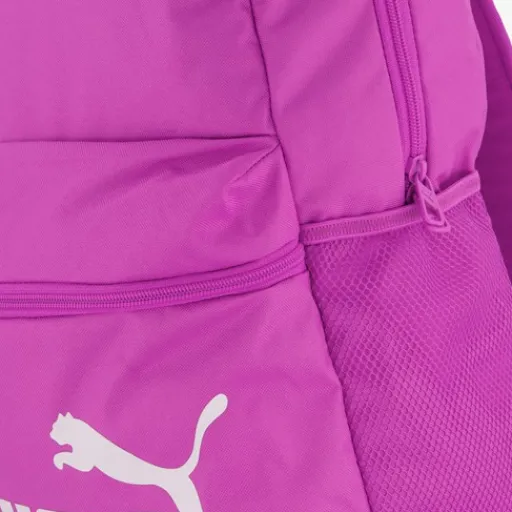 Paarse Puma Phase rugzak. Voorzien van een ophanglus aan de bovenzijde, een ruim hoofdvak met dubbele ritssluiting, een voorvakje met ritssluiting en gewatteerde, verstelbare schouderbanden. De rugzak heeft een meshvak aan de zijkant voor je drinkfles. Gemaakt van polyester. Afmetingen: 30 x 14 x 44 cm. De inhoud is 22 liter.ΒΆΒΆ
