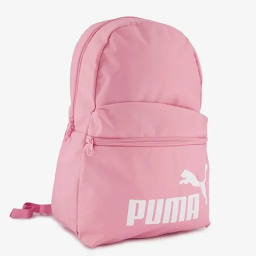 Roze Puma Phase rugzak. Voorzien van een handgreep aan de bovenzijde, een ruime hoofdvak met dubbele ritssluiting, een voorvakje met ritssluiting, een meshvakje aan de zijkant en gewatteerde, verstelbare schouderbanden. Deze handige tas is tijdloos en is gemaakt van polyester. Afmetingen: 30 x 14 x 44 cm. De inhoud is 22 liter.