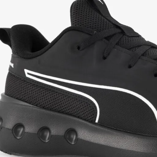Zwarte Puma Softride Carson hardloopschoenen voor heren. Het ademende bovenwerk is gemaakt van mesh, het binnenwerk van textiel en de profielzool is van rubber. Voorzien van een vetersluiting en aantreklusjes op de hak en tong. De Puma Softride Carson hardloopschoenen bieden veel demping en comfort dankzij de Soft Foam binnenzool en dikke hiel. De binnenzool is uitneembaar.