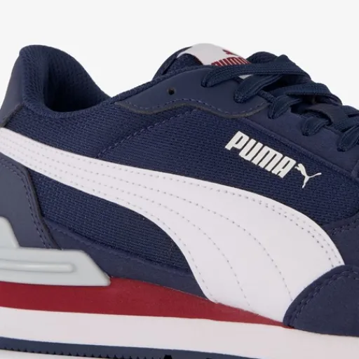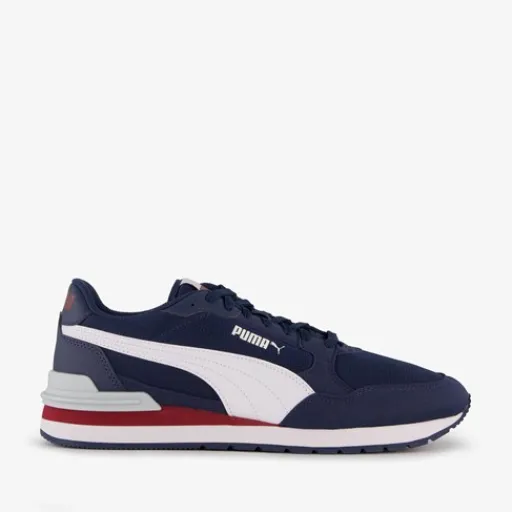 Blauwe Puma ST Runner hardloopschoenen voor heren. Het buitenwerk si gemaakt van mesh en imitatieleer, het binnenwerk van textiel en de profielzool van rubber. Voorzien van een vetersluiting en een uitneembare binnenzool van textiel. Deze bevat Soft Foam wat demping en comfort biedt. De schoenen hebben een tijdloos ontwerp en worden versierd met witte, grijze en rode accenten.
