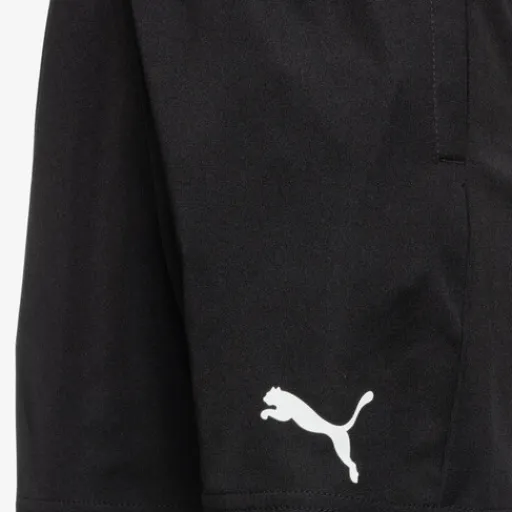 Zwart Puma Teamrise sportshort voor kids. Vervaardigd van sneldrogend materiaal. Het sportshort heeft een elastische tailleband met aantrekkoordjes en een comfortabele pasvorm zodat je vrij kunt bewegen tijdens het trainen. Gemaakt van 100% polyester.