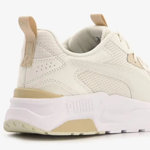 Beige Puma Trinity Lite sneakers voor dames. Het bovenwerk is gemaakt van imitatieleer en mesh, het binnenwerk van textiel en de stevige buitenzool van rubber. Deze mooie schoenen zijn op hardlopen geïnspireerd en hebben een hippe chunky zool. Voorzien van een SoftFoam+ voetbed en een IMEVA-tussenzool, wat zorgt voor extra comfort en zachte demping. Verder hebben de Puma Trinity Lite dames sneakers een vetersluiting en aantreklusjes op de hak en de tong voor een makkelijke instap. Binnenzool is uitneembaar.¶¶