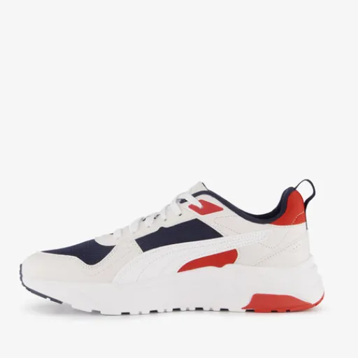 Witte Puma Trinity Lite sneakers voor heren. Het buitenwerk is gemaakt van textiel en imitatieleer, het binnenwerk van textiel en de stevige zool met profiel is van rubber. Voorzien van een vetersluiting en hiellusjes voor een makkelijke instap. De sneakers hebben rode en zwarte details een uitneembare binnenzool.
