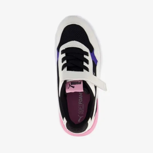 Witte Puma X-Ray Speed Lite sneakers voor meisjes. Het buitenwerk is gemaakt van imitatieleer, het binnenwerk van textiel en de stevige profielzool van rubber. Voorzien van elastische veters met klittenbandsluiting voor en optimale pasvorm en een uitneembare binnenzool van textiel. Deze bevat Soft Foam wat demping en comfort biedt. De sneakers worden versierd met zwarte, paarse en roze accenten.