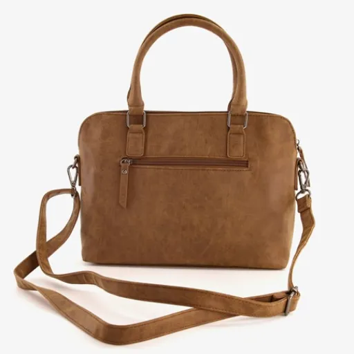 Grote hand/schoudertas met verstelbare, afneembare schouderband. De tas heeft een achtervak en twee voorvakken met rits. Het grote hoofdvak met ritssluiting bevat extra vakjes, waaronder eentje voor je laptop of boeken. De tas is gemaakt van imitatieleer. Afmetingen: 31x8x24 cm.