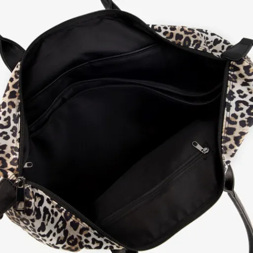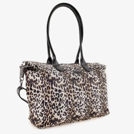 Beige schoudertas met panterprint van Renato Lucci. Voorzien van draaglussen aan de bovenzijde en een verstelbare, afneembare schouderband. De tas heeft een ruime hoofdvak met meerdere binnenvakken en een ritssluiting. Daarnaast heeft de tas een achtervakje met ritssluiting. De tas heeft zwarte details en zilverkleurige hardware. Afmetingen: 48 x 14 x 34 cm. Gemaakt van polyester.