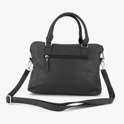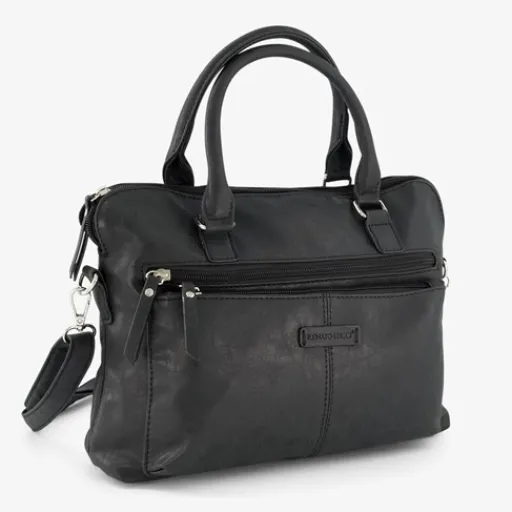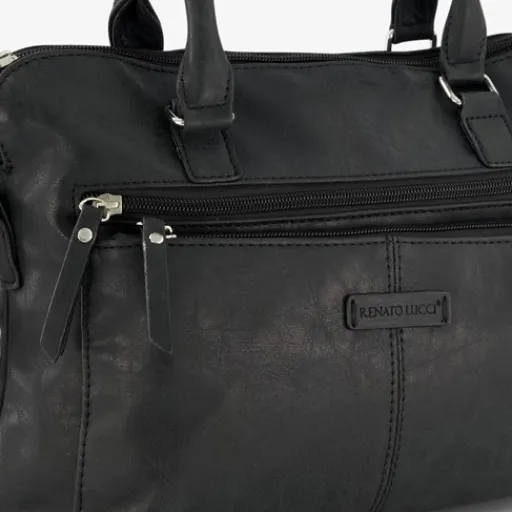 Zwarte tas van Renato Lucci. De tas heeft twee draaglussen zodat je ‘m als handtas kunt dragen, en een verstelbare en afneembare schouderband. Voorzien van twee voorvakken, een achtervak en een groot hoofdvak met ritssluiting. De tas is gemaakt van imitatieleer. Afmetingen: 31x8x24 cm.