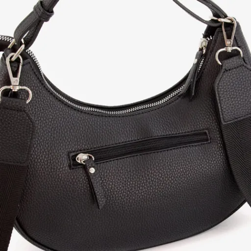 Zwarte schoudertas van Renato Lucci. Voorzien van een verstelbare en afneembare schouderband zodat je de tas ook als handtas kunt dragen. Aan de achterzijde zit een extra vakje met rits. De tas heeft een hoofdvak met ritssluiting en is gemaakt van imitatieleer. Afmetingen: 28 x 9 x 22 cm.