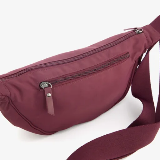 Bordeauxrode tas voor dames van Renato Lucci. Deze crossbody tas is perfect voor een festival omdat je ‘m schuin over je bovenlichaam kan dragen en naar voren kan schuiven zodat je er zicht op hebt. Daarnaast is de tas compact en heeft het voldoende ruimte voor al je festival essentials! De tas heeft een verstelbare schouderband, een hoofdvak met ritssluiting en een achtervakje met rits. Afmetingen: 32 x 6 x 11,5 cm. Gemaakt van nylon.