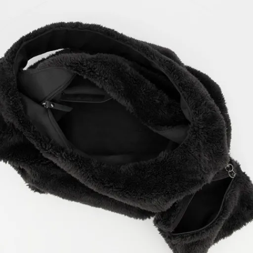 Zwarte teddy schoudertas met portemonnee voor dames uit de Renato Lucci collectie. Voorzien van een stevige draaglus en een ruime hoofdvak met ritssluiting. In het hoofdvak bevinden zich twee kleine vakken waar je jouw sleutels, telefoon of pasjes in kwijt kan. Afmetingen: 40 x 17 x 35 cm. Gemaakt van polyester.