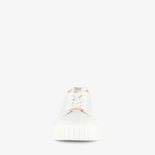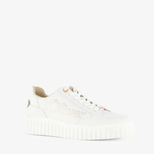 Witte s.Oliver dames sneakers met rosékleurige metallic details. Gemaakt van imitatieleer met een binnenwerk van textiel en een stevige plateauzool van rubber. De sneakers zijn voorzien van een vetersluiting en een comfortabele binnenzool van textiel. Deze is uitneembaar.