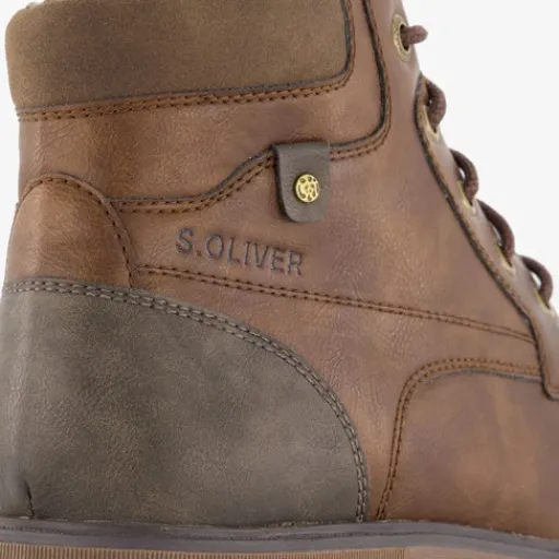 Donkerbruine veterboots voor heren van s. Oliver. Gemaakt van imitatieleer, een binnenwerk van textiel en een rubberen zool. De boots hebben een vetersluiting en rits aan de binnenzijde. Het comfortabele voetbed is gemaakt van textiel. Deze is niet uitneembaar. De veterboots hebben merkopdrukken op het bovenwerk en een lage hak.