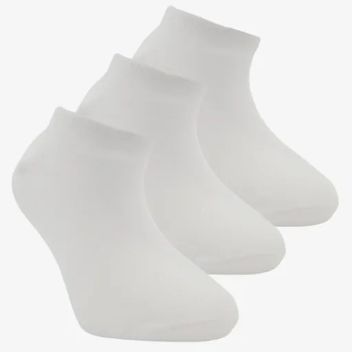Drie paar witte sneakersokken voor kinderen. Gemaakt van 75% katoen, 22% polyester en 3% elastaan.