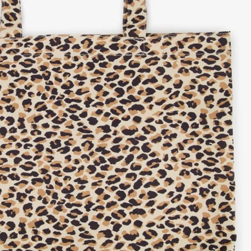 Beige shopper met panterprint voor dames. Voorzien van twee stevige draaglussen en gemaakt van polyester. Afmetingen: 58 x 51 x 35 cm.