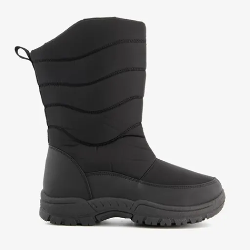 Zwarte, gevoerde snowboots voor dames. Gemaakt van imitatieleer en nylon, een binnenwerk van textiel en een stevige profielzool. De snowboots hebben ritssluiting en een zachte binnenvoering van imitatiebont. Het voetbed biedt comfort en houdt je voeten lekker warm. De snowboots hebben een dikke, rubberen buitenzool met diep profiel voor een goede grip en demping