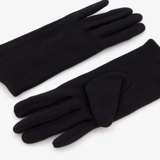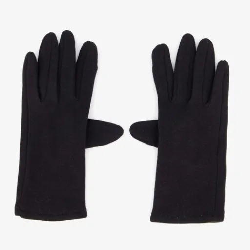 Zwarte, fijngebreide handschoenen voor dames. Gemaakt van 93% polyester en 4% elastaan.