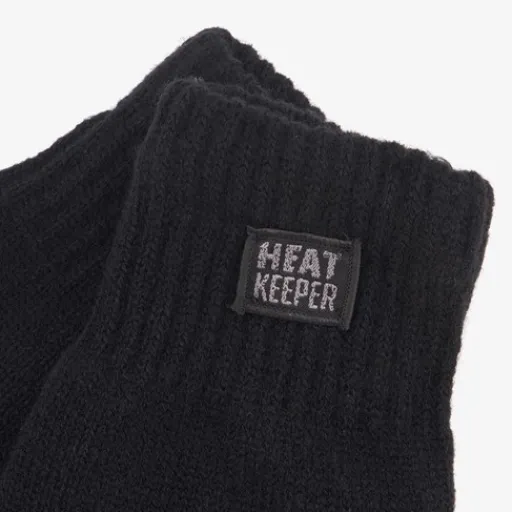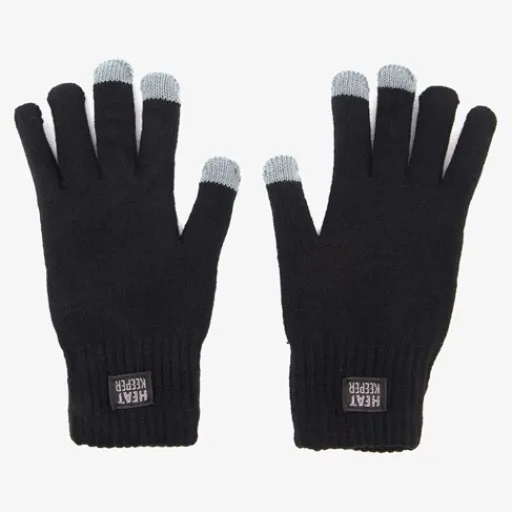 Zwarte Heat Keeper handschoenen voor dames en heren met touchscreen vingertoppen. Voorzien van aansluitende pasvorm en verleningen boven de polsen zodat je ze in de mouwen van je jas kan doen. Deze handschoenen houden je handen warm terwijl jij lekker door kan blijven scrollen op je smartphone. Gemaakt van 78% polyacryl, 20% polyester, 1% elastaan en 1% katoen.