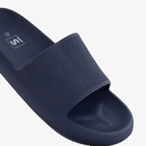 Donkerblauwe badslippers voor heren. Voorzien van een brede teenband en een comfortabel voetbed. De badslippers zijn gemaakt van synthetisch, lichtgewicht materiaal dat snel droogt.